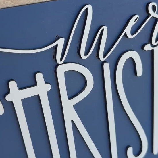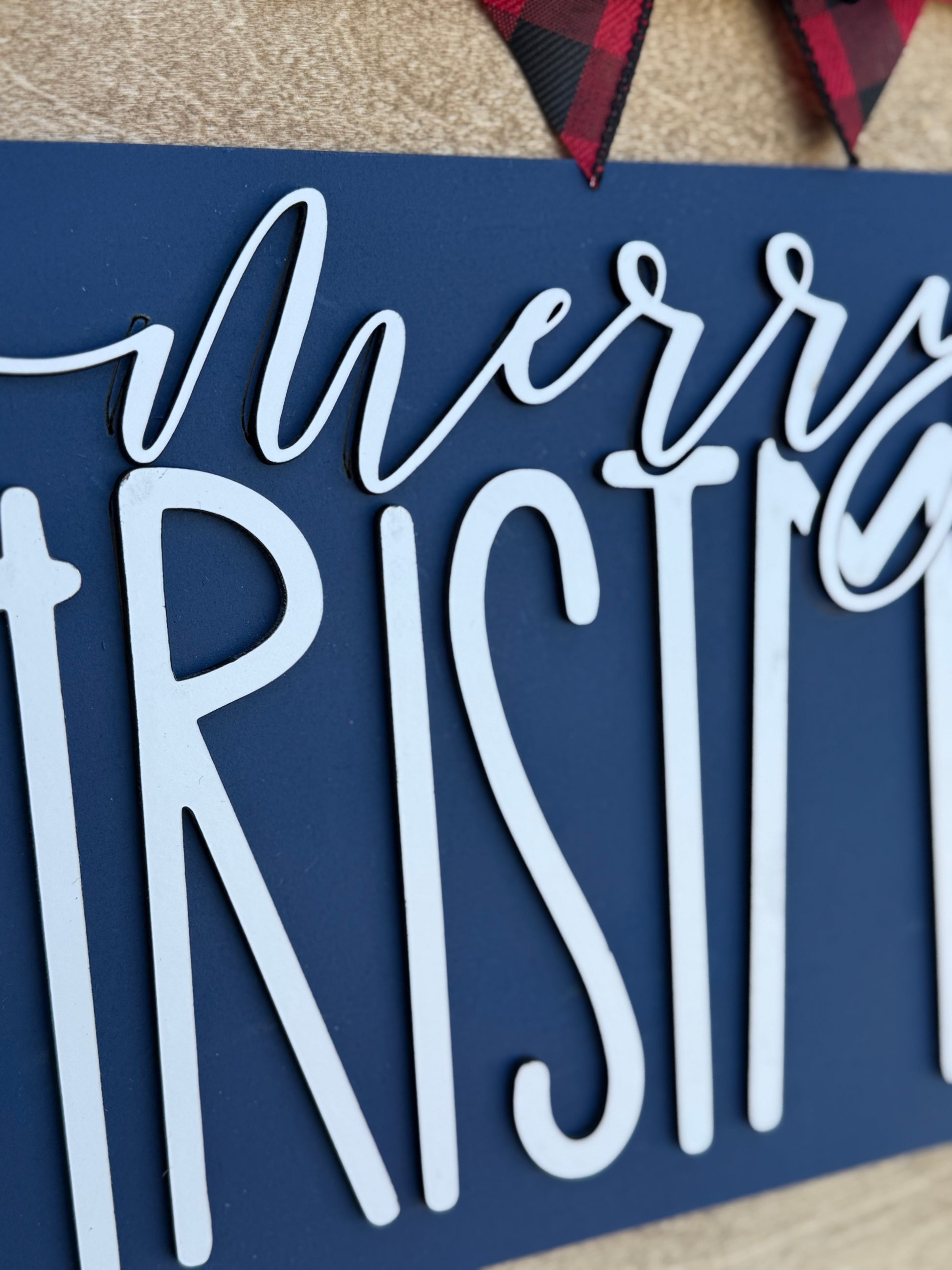 Merry Christmas Door Hanger | Layered Wood Sign | Red, Blue or Green Stripe | Christmas Porch Decor | Holiday Front Door Sign | Handmade