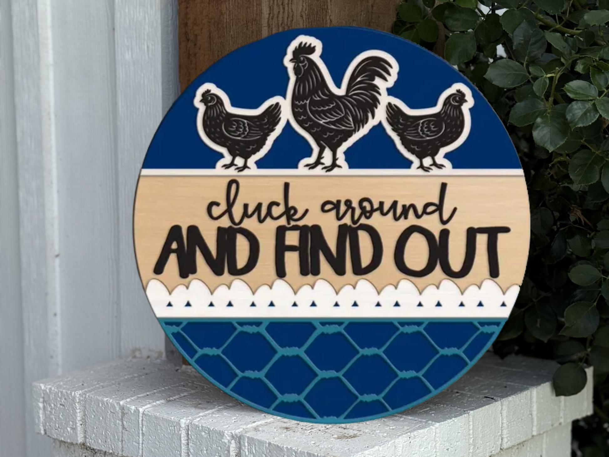 Add some farmhouse humor to your home or chicken coop with our “Cluck Around and Find Out” Wooden Door Sign 🐔. This playful sign features a bold rooster and hens perched above the cheeky phrase, all layered on a rustic farmhouse backdrop with chicken-wire detail. Perfect for chicken keepers, backyard farmers, or anyone who loves country living with a side of humor.