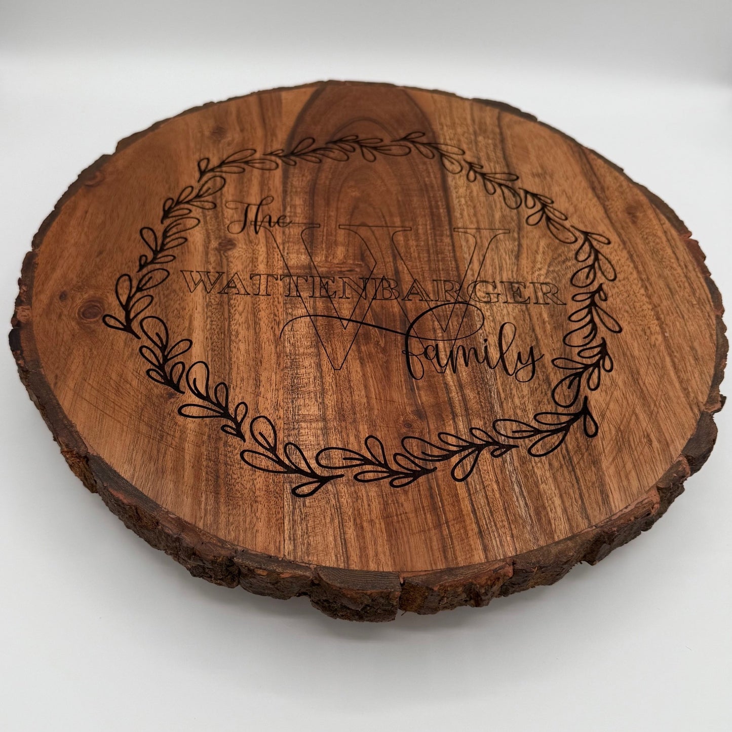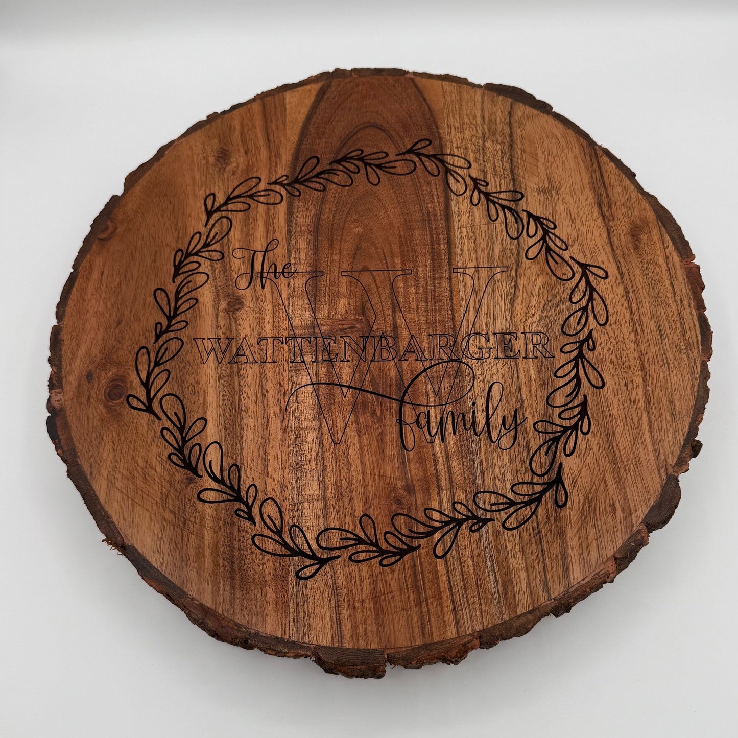 ![A round wooden board with bark edges features a laser-engraved design. In the center, it says The [NAME] Family surrounded by a delicate leaf wreath. The wood has a rich grain and the board sits on a smooth white surface.](http://getzitdone.shop/cdn/shop/files/thumbnail_IMG_1093.jpg?v=1759313882&width=1445)