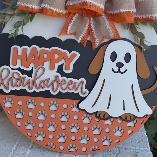 Celebrate spooky season with a touch of puppy love! 🐶🎃 Our Happy Howloween Dog Halloween Door Sign is perfect for dog lovers who want festive, pet-themed fall décor. Featuring a ghost-costumed puppy, playful paw prints, and bold Halloween colors, this 3D layered wooden sign makes a boo-tiful statement on any front door, porch, or entryway.