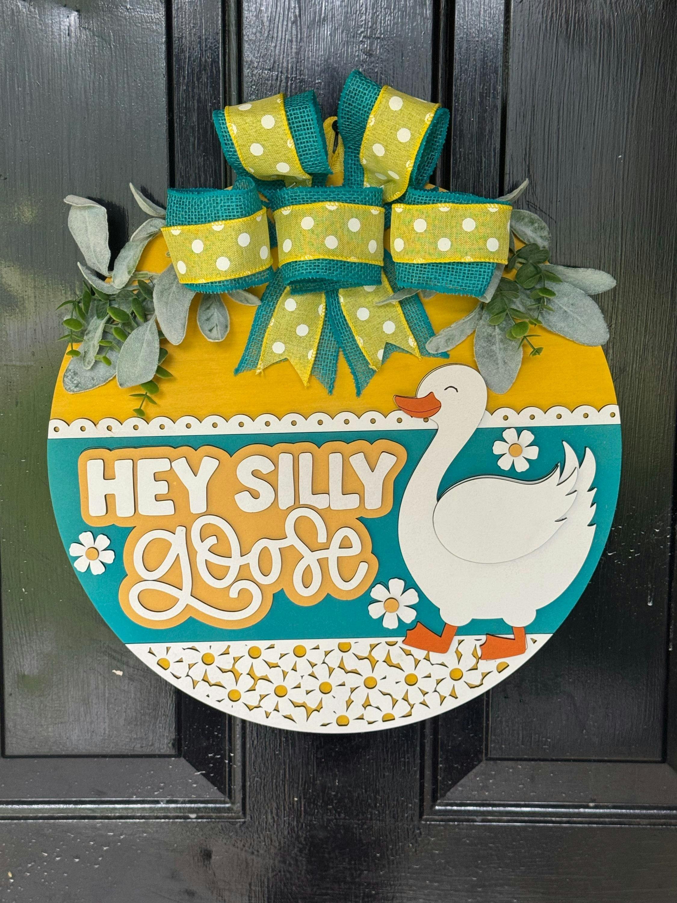 Introducing the Hey Silly Goose Door Sign, a whimsical and charming addition to your home decor that will instantly bring a smile to your face. Handmade with love in Fort Worth, Texas USA, this delightful sign is crafted with meticulous attention to detail, ensuring a high-quality product that will last for years to come.