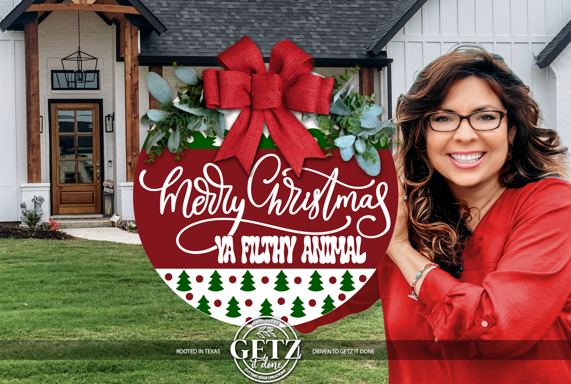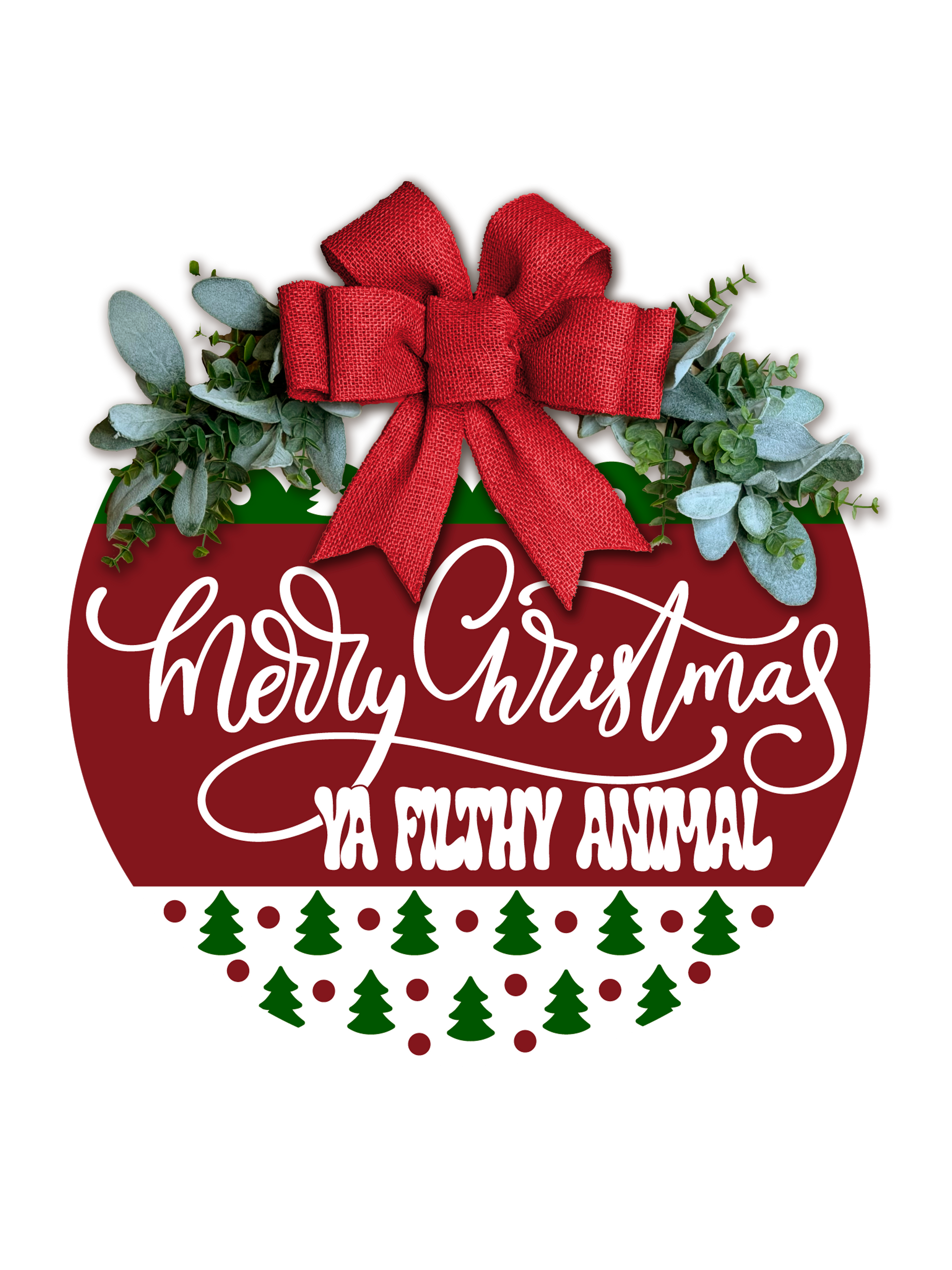 Merry Christmas Ya Filthy Animal Door Sign • Funny Christmas Door Hanger • Holiday Porch Decor • Christmas Round Sign • Laser Cut