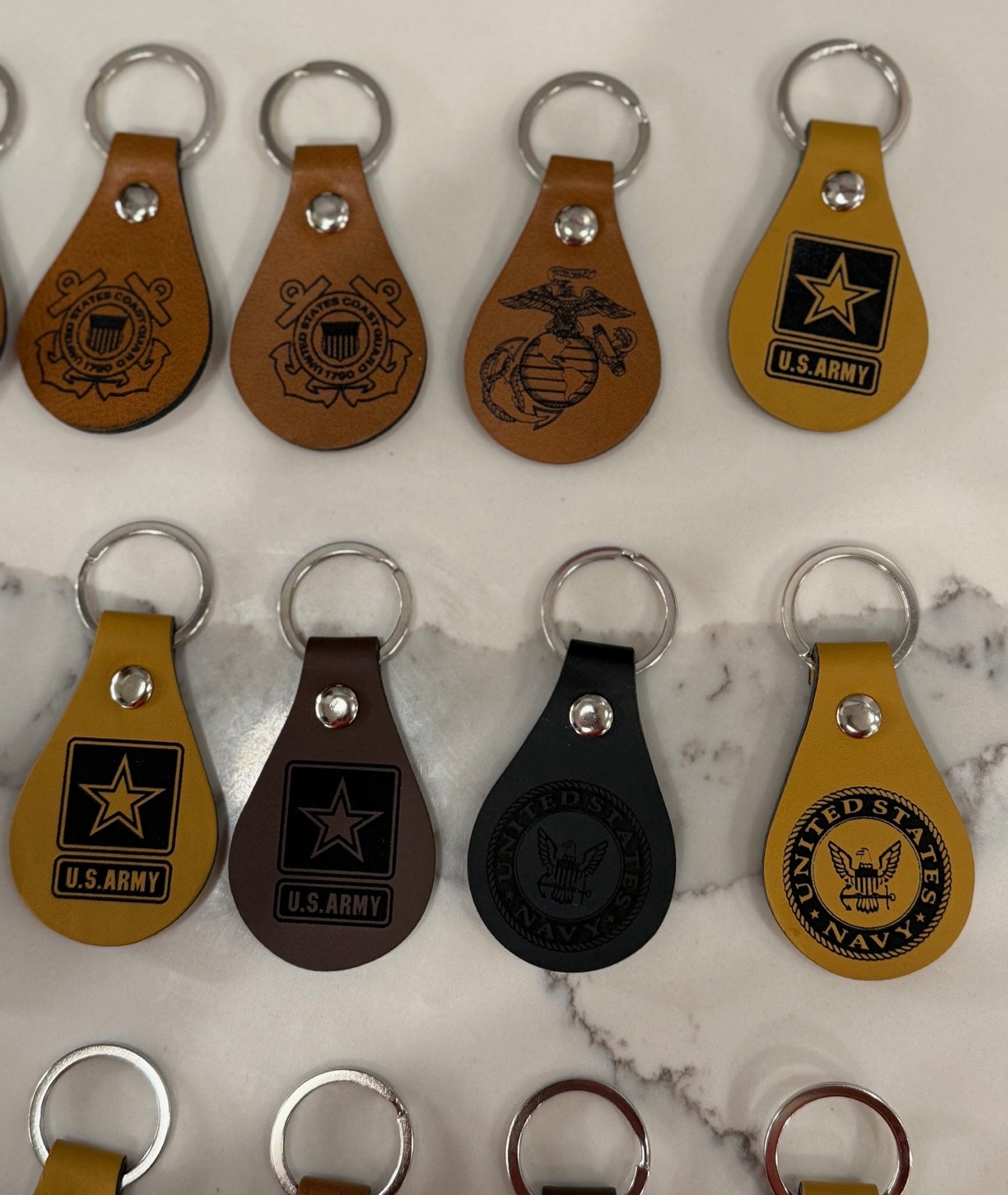 Military Logo Round Leather Engraved Keychain - Perfect for Military Members, Veterans and Keychain Enthusiasts