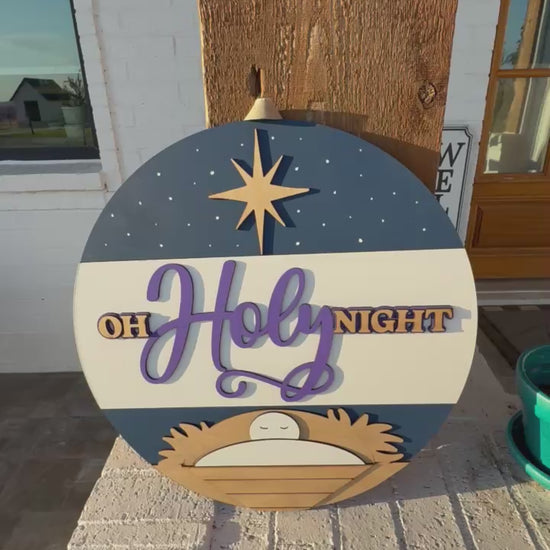 Oh Holy Night Nativity Door Sign | Christian Christmas Decor | Religious Holiday Porch Hanger | Baby Jesus Manger Wall Art